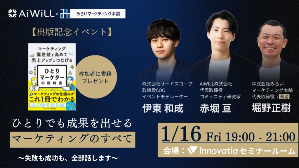 【開催報告】2026/1/16 AiWiLL × みらいマーケティング本舗 『ひとりマーケターの教科書』出版記念トークセッションを実施しました