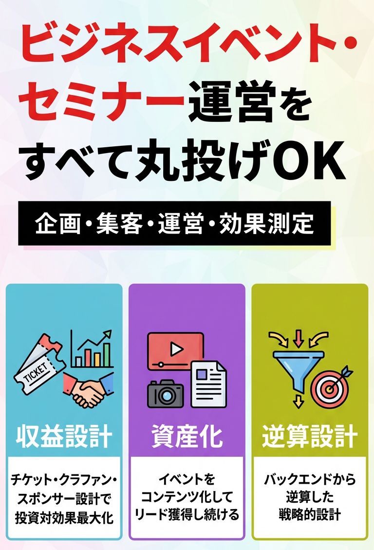 企業様の『リード獲得/商談形成』『採用』『ブランディング』といった企業の課題を特化したイベントマーケティングの支援(戦略策定、企画(セミナー・ウェビナー・展示会等)、実行)をご予算・ご要望に合わせてサポートしております。