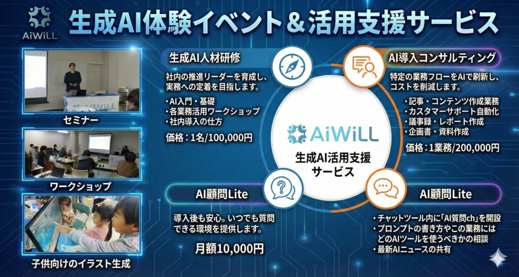 大手から中小・ベンチャー企業・自治体・商業施設・学校の生成AI活用推進&イベント作り