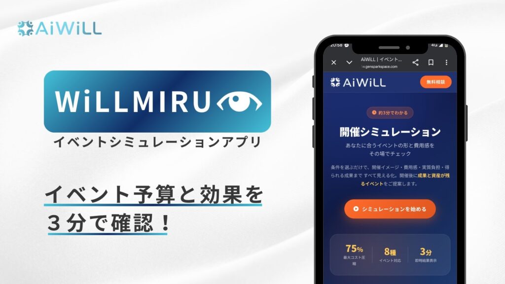 ビジネスイベントの開催コストと効果が3分でわかる。イベントシミュレーションアプリ「WiLLMIRU」を無料公開!