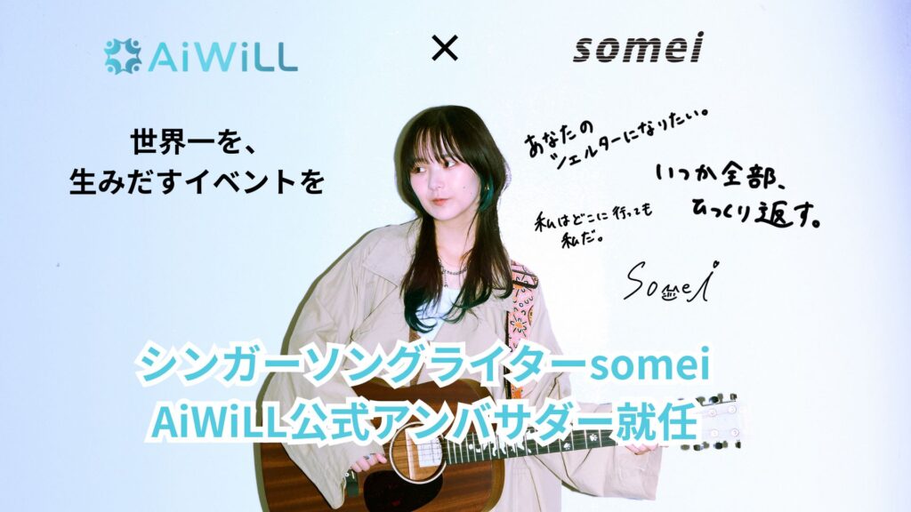 シンガーソングライター・somei氏が、AiWiLL株式会社の公式アンバサダー就任いたしました。