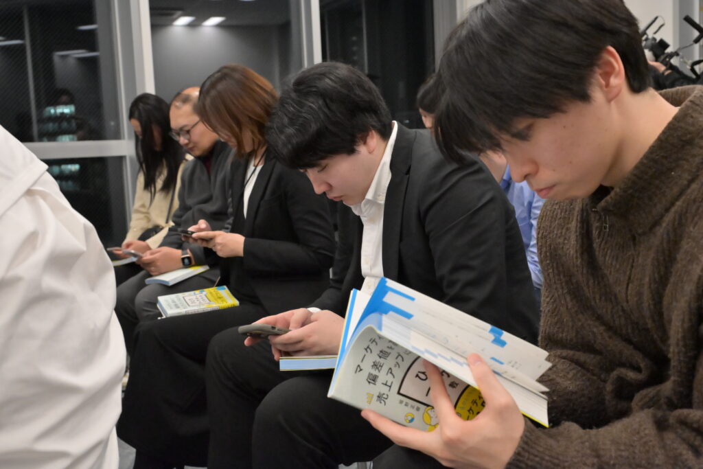冒頭、モデレーターの和成氏が「ゆるふわな雰囲気で楽しく進めましょう」と場を和ませる一方で、定員20名の会場は満席。「ひとりでも成果を出せるマーケティングのすべて」というテーマに対し、最前列から最後列まで、参加者の真剣な眼差しと熱気が充満する中でのスタートとなりました。
