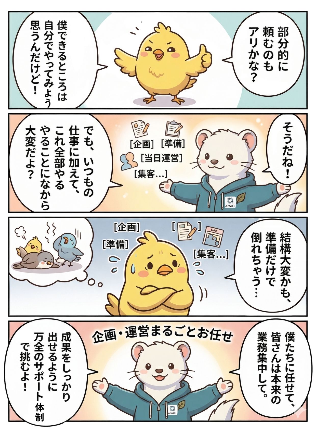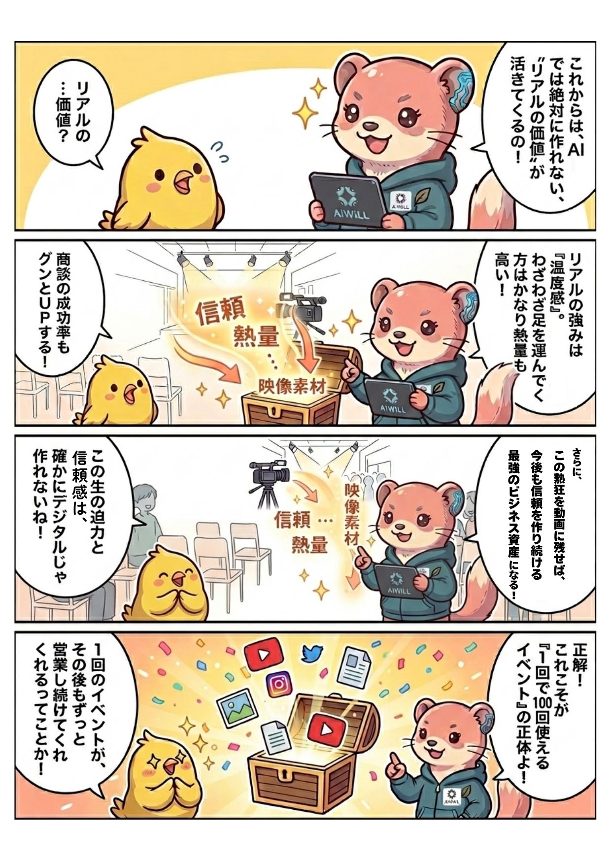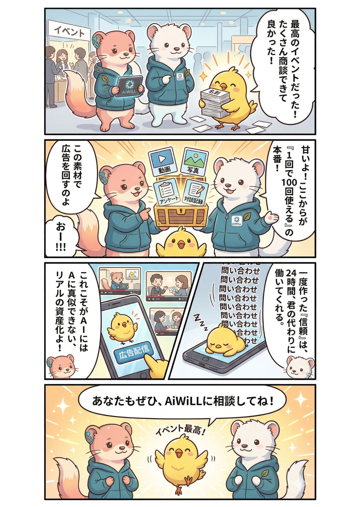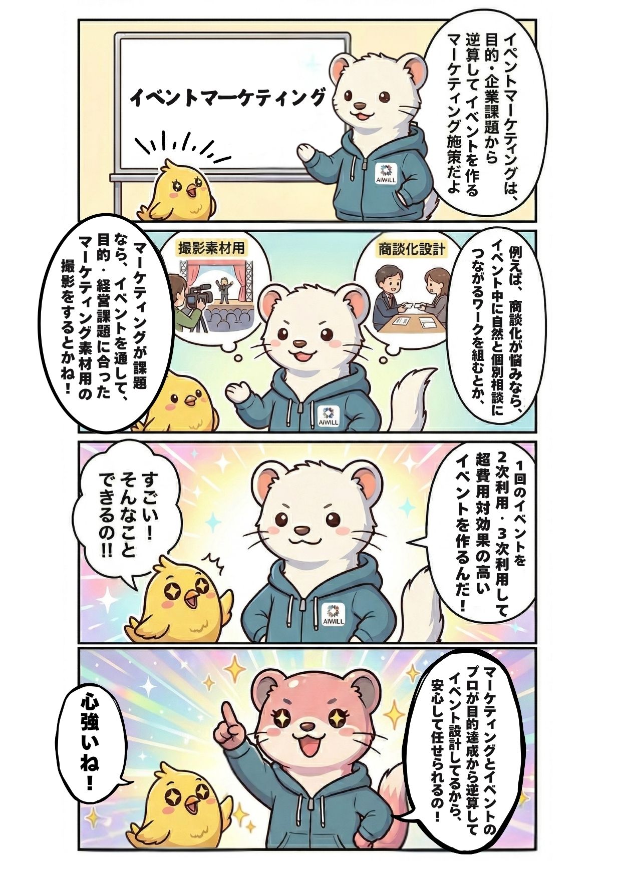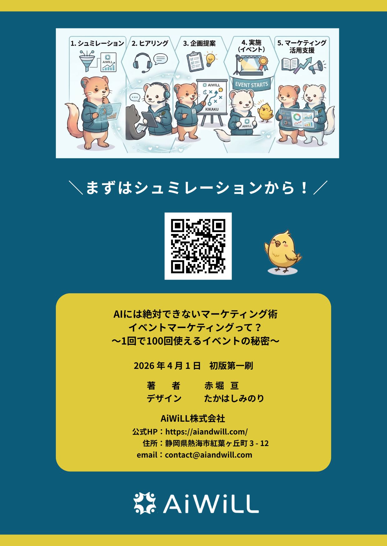 – 巻末特典 :AiWiLL特典ライブラリ –「過去の出版イベントセミナーアーカイブ」や「イベントの教科書」、「イベント運営マニュアル-チェックリスト」などのお役立ち資料を無料で配布中